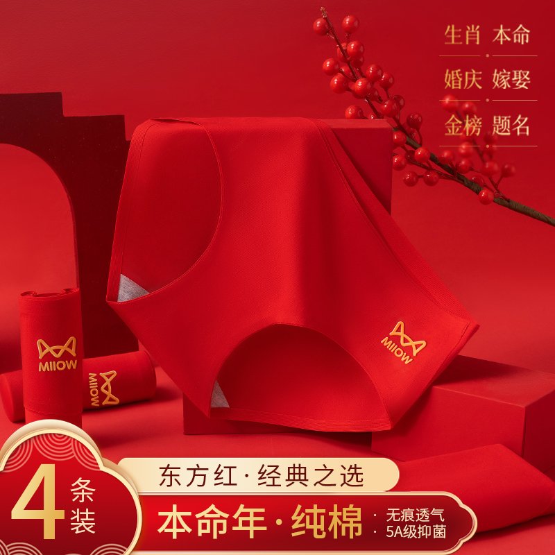 红色三角裤 有棵树莫代尔内裤 女纯棉全棉裆抗菌无痕透气中高腰大码