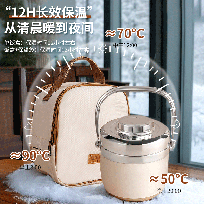 304不锈钢超长保温饭盒冬上班族便携带饭桶学生提锅便当盒汤壶碗