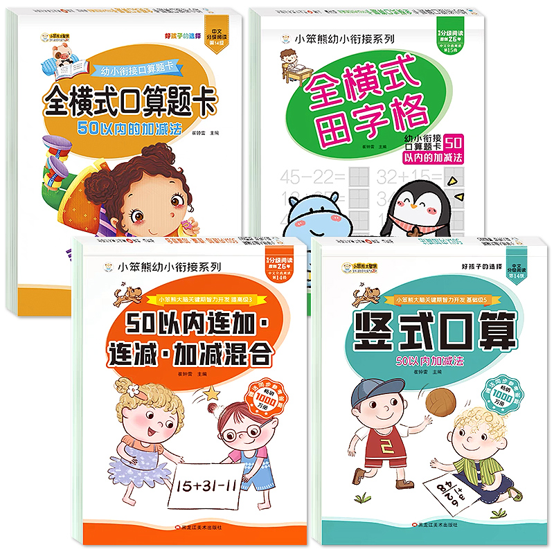 田字格口算题卡幼小衔接一日一练幼儿园大班一年级数学思维训练20 竖式 五十以内连加连减加减混合计算算术本 加减法全横式 50以内