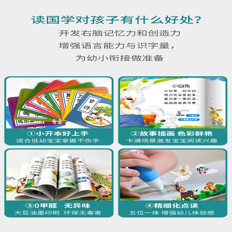 点读图书 书籍早教三字经点读发声书小学生必读课外古诗书籍国学经典 宝宝国学诵读小课本0 3岁幼国学启蒙经典