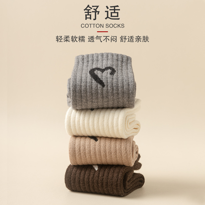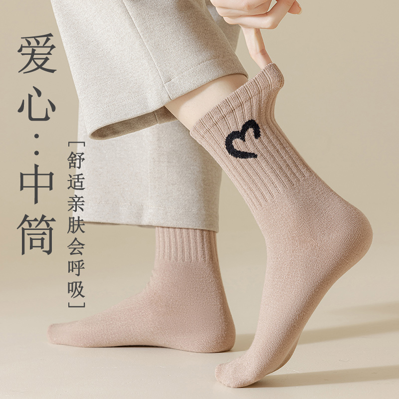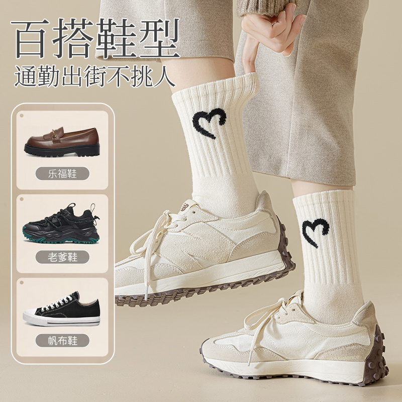 美拉德袜子女中筒袜秋冬季 堆堆长筒袜冬 纯棉无骨月子袜搭配勃肯鞋