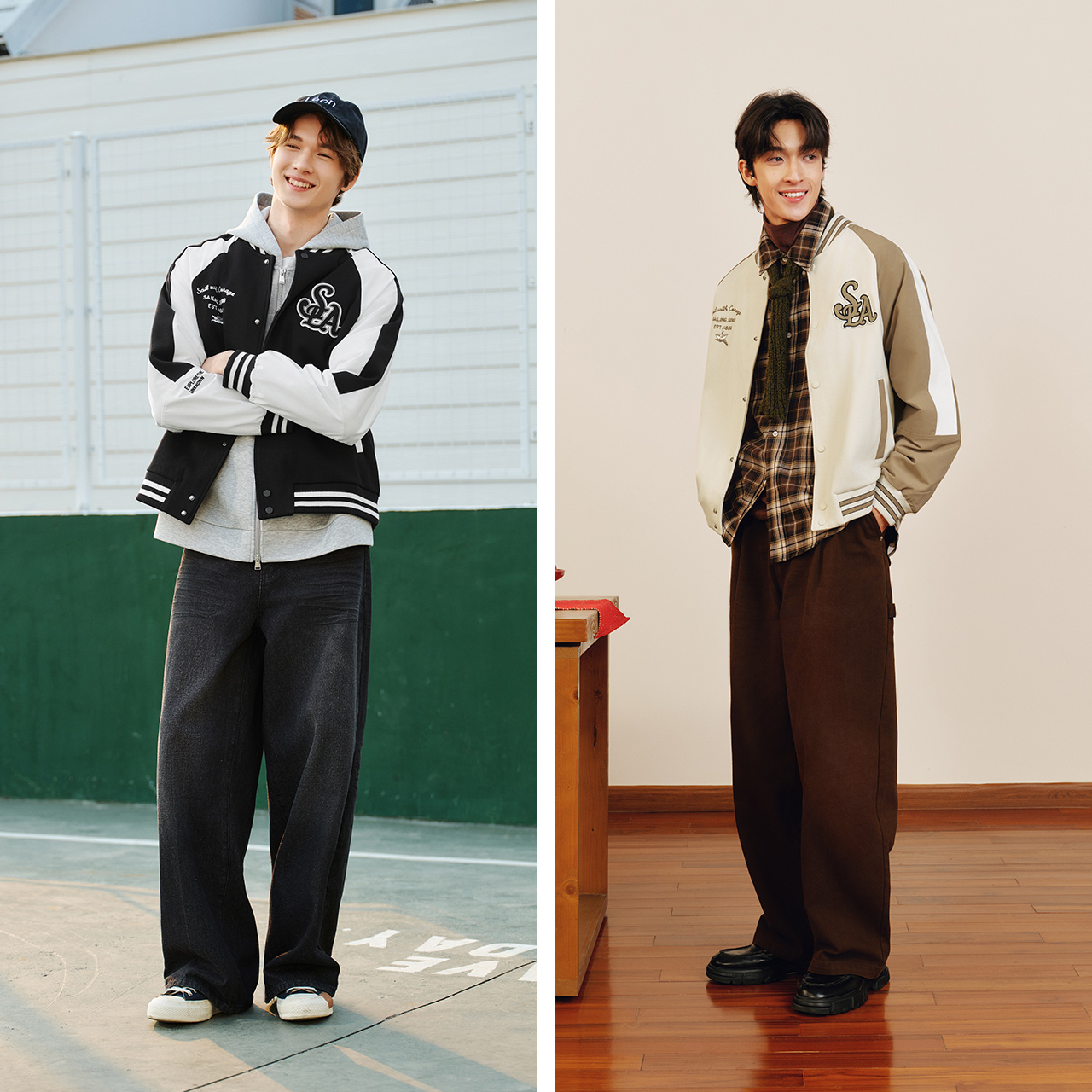 商场同款 外套时尚 森马夹克男2025秋季 撞色拼接插肩袖 刺绣潮 新款