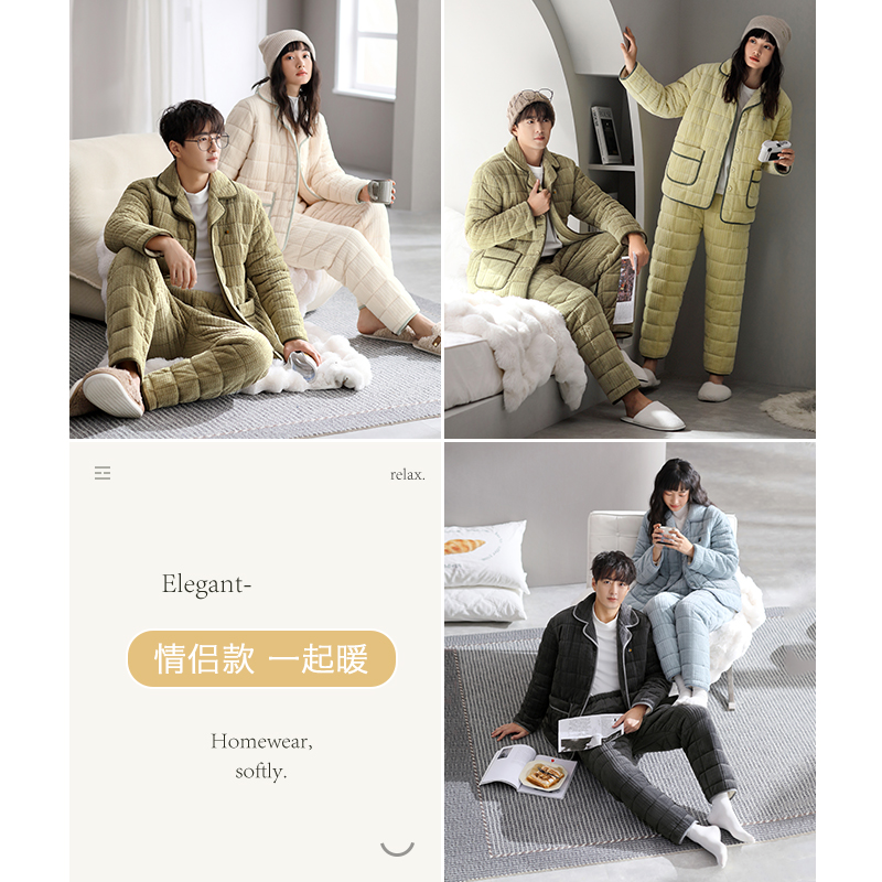 情侣睡衣男冬天珊瑚绒法兰绒三层加厚夹棉加绒家居服女秋冬款 冬季
