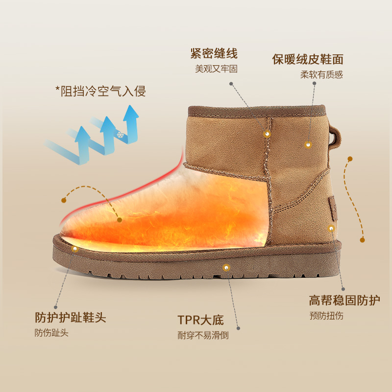 加绒保暖加厚防寒靴女短筒情侣棉鞋 森马东北雪地靴男2025新款 冬季