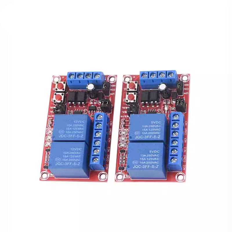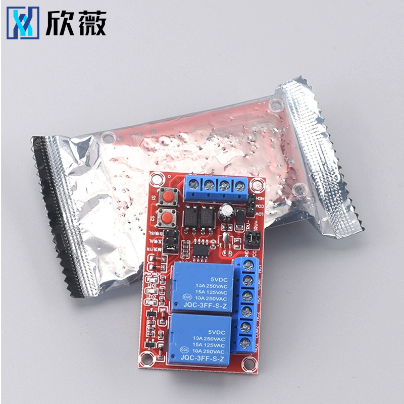 2路按键自锁互锁三选一继电器模块高低电平触发带开关灯 5V12V24V
