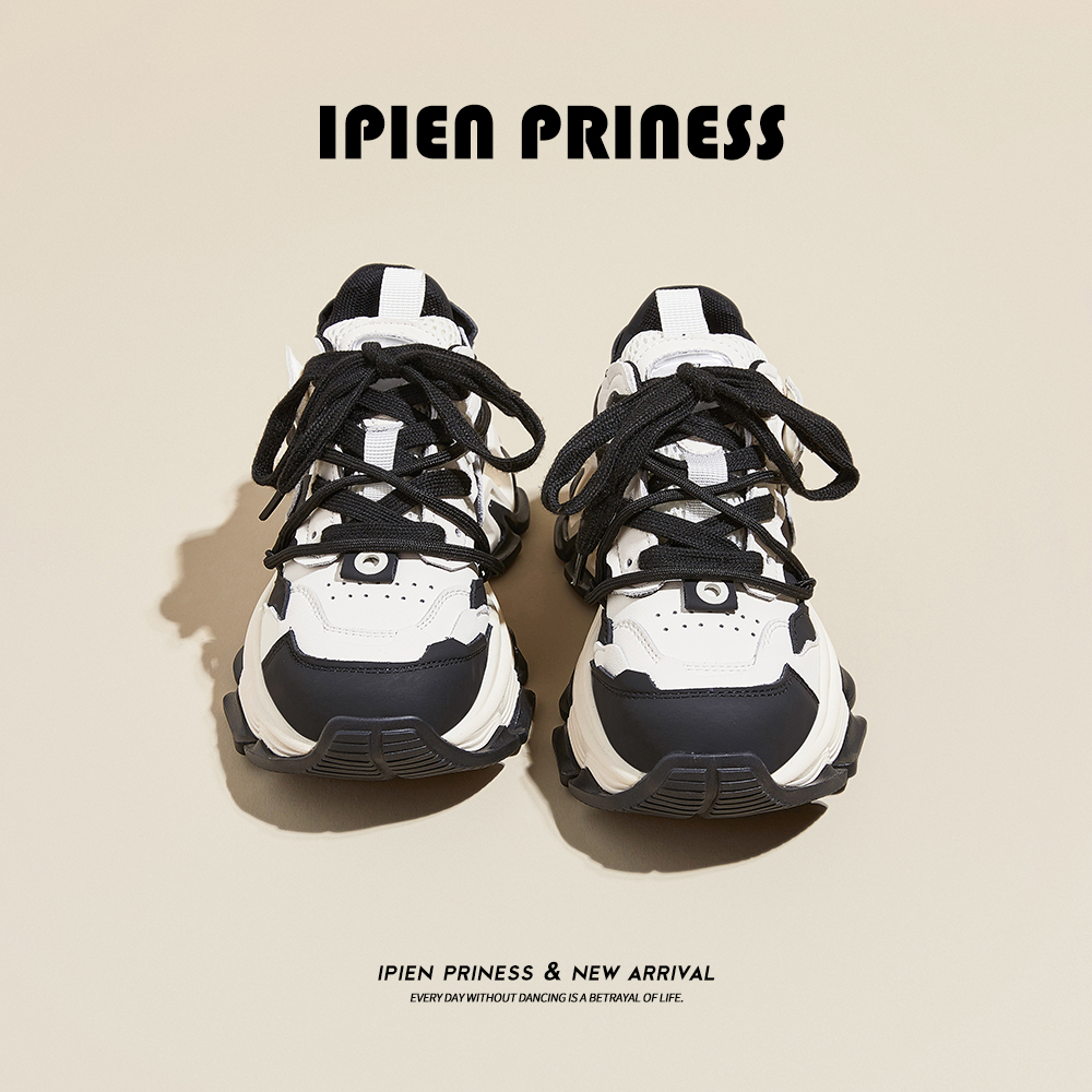 女2025春季 网红运动鞋 新款 黑色爆款 真皮透气百搭休闲鞋 厚底老爹鞋