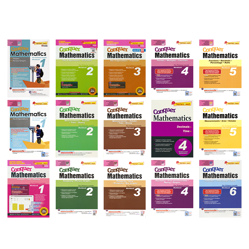 英文进口 新加坡攻克系列小学数学专项训练 分数小数练习册 形状结构 6年级数学长度时间金钱 Mathematics Conquer SAP 自营
