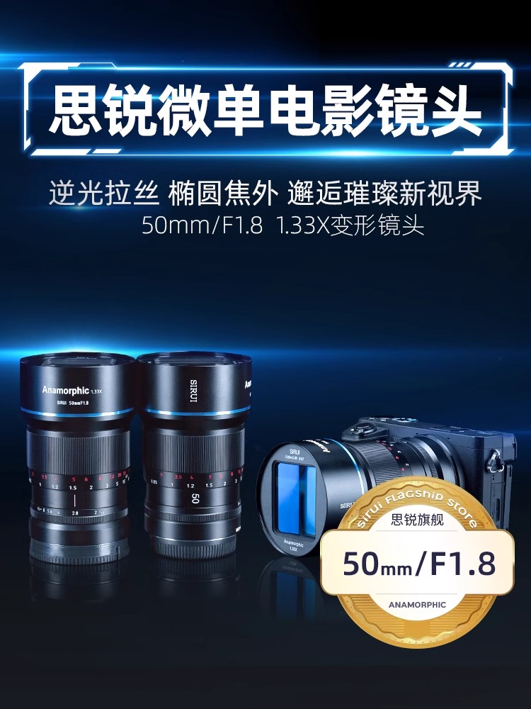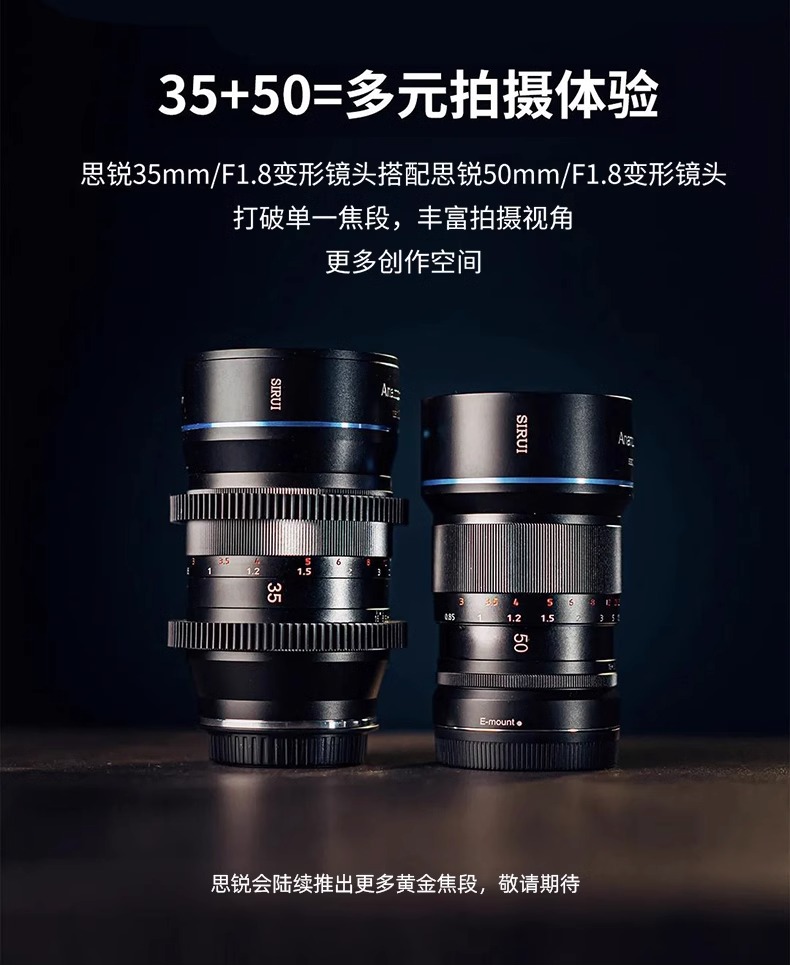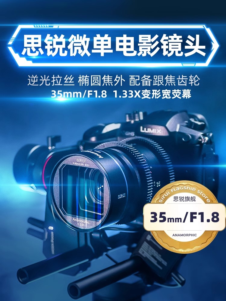 思锐35mm F1.8微单电影镜头宽银幕1.33X变宽适用于M43索尼佳能