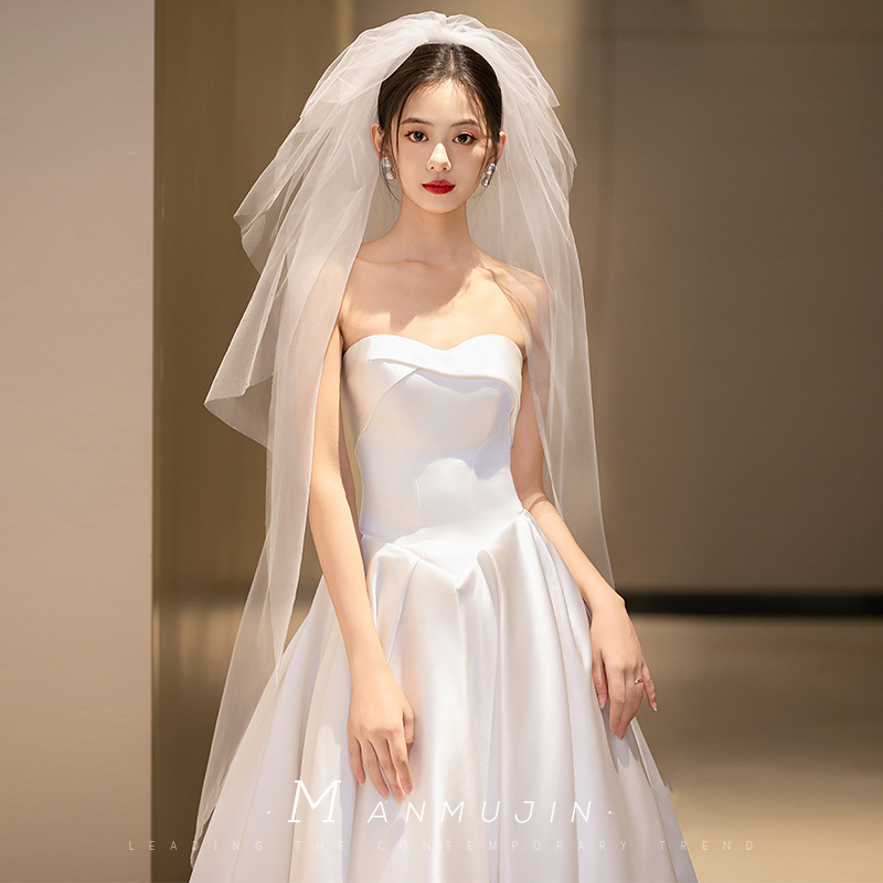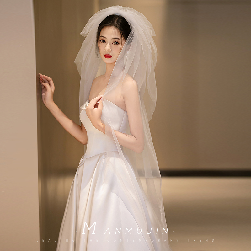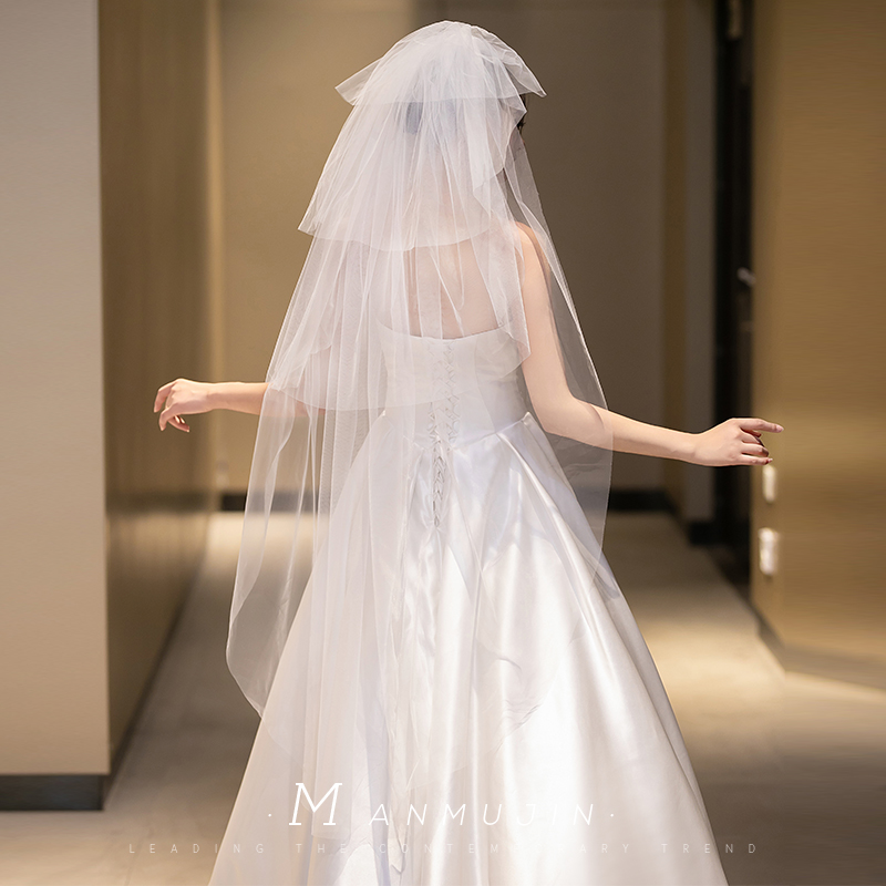 超仙简约中长款 多层头纱软网素纱新娘结婚旅拍照影楼跟妆造型头饰