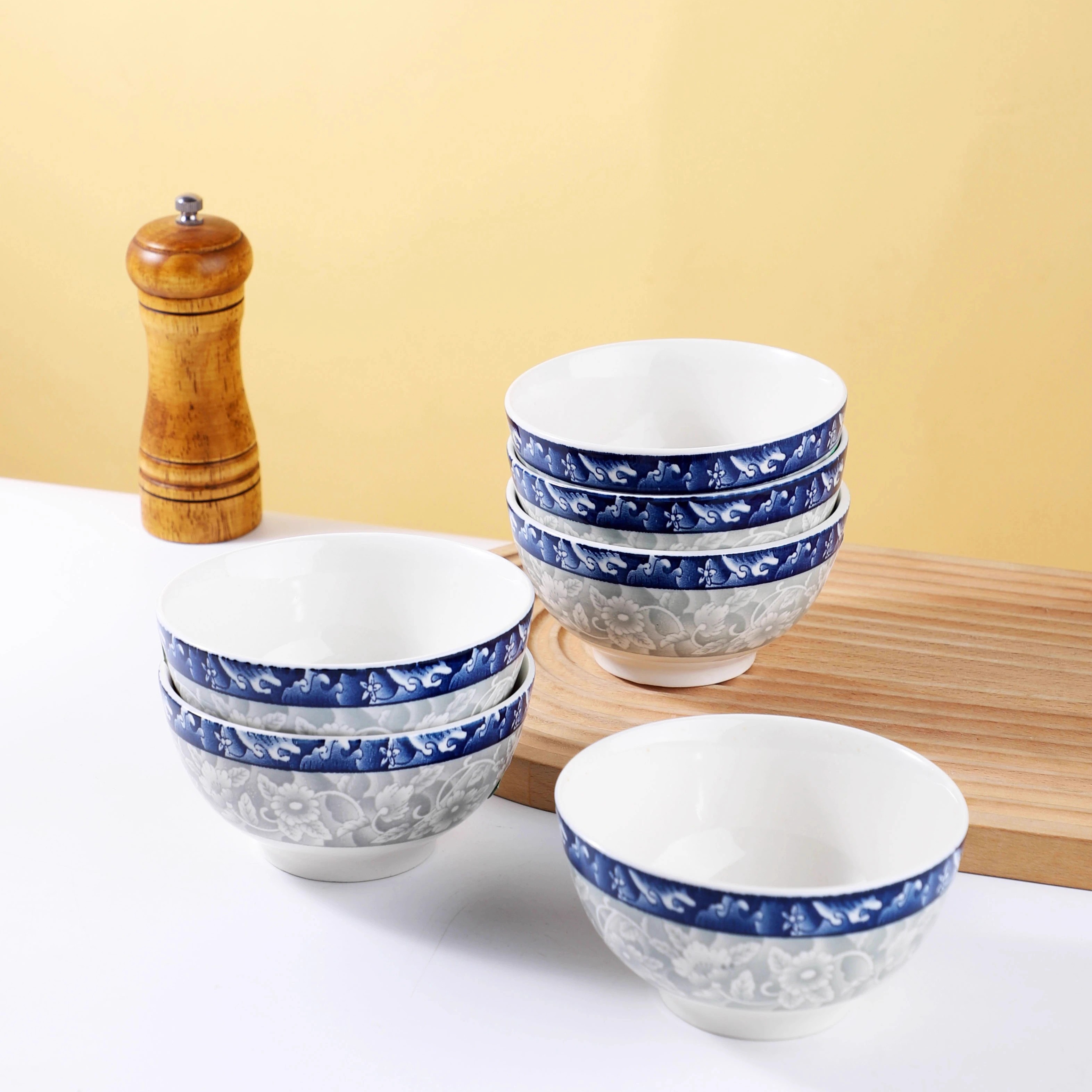 碗4个装 纯白骨瓷碗4.5英寸吃饭碗白色陶瓷碗餐具大碗汤碗家用面碗