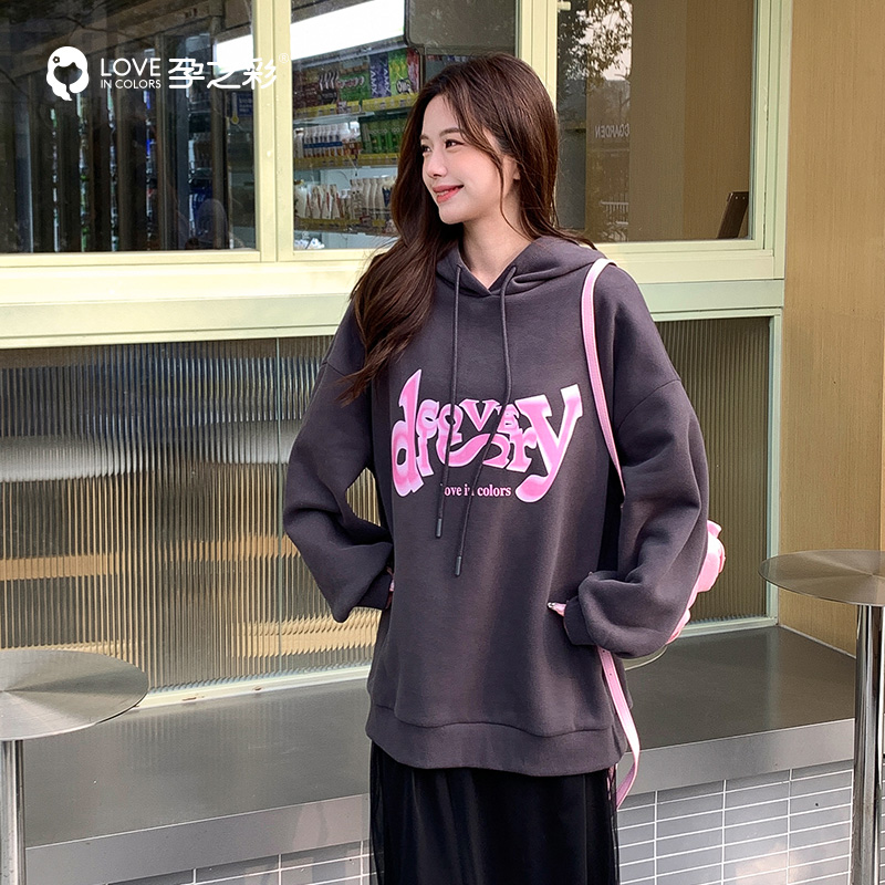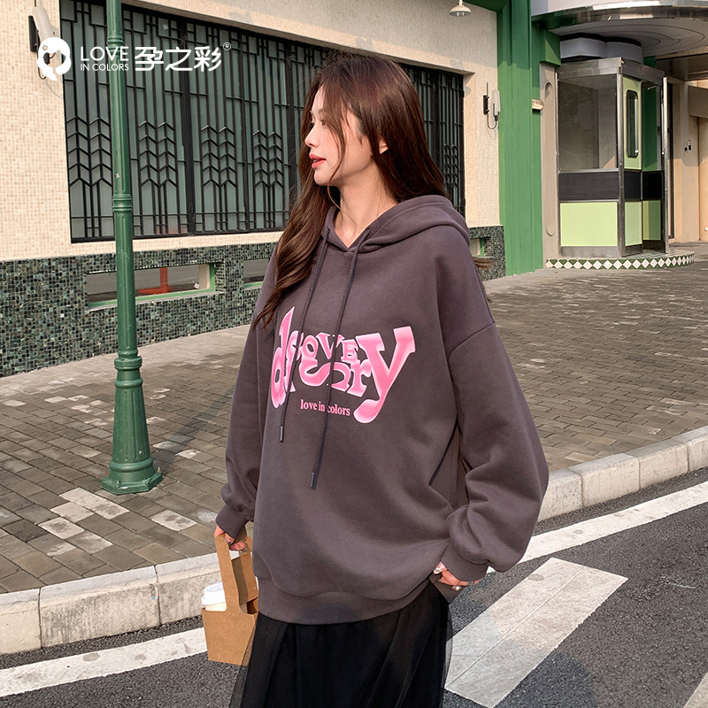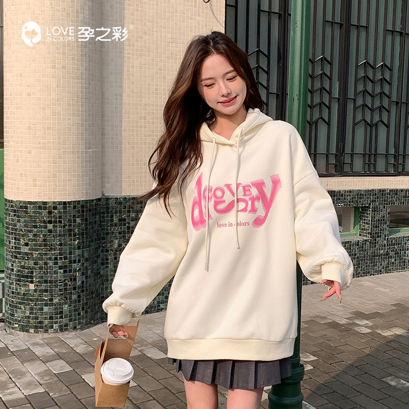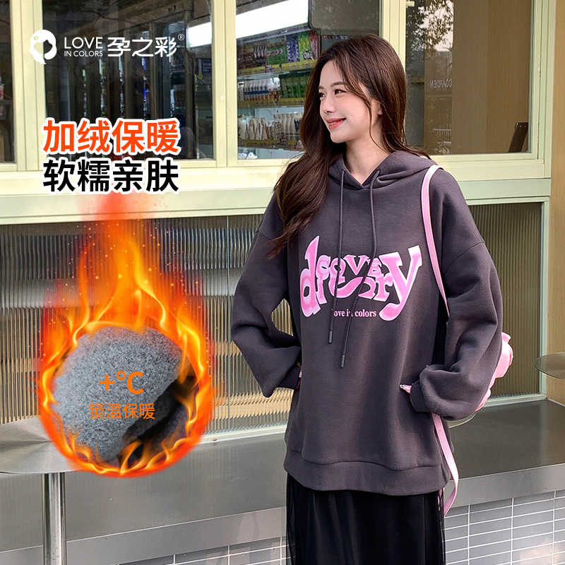 孕妇装 孕之彩孕妇卫衣秋冬加绒保暖连帽上衣中长款 遮屁股外穿秋季