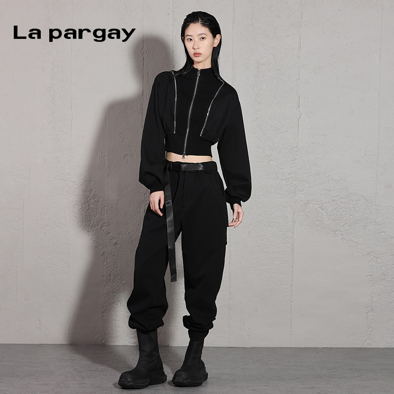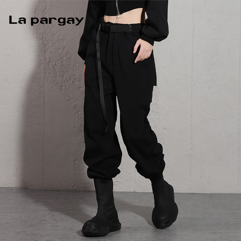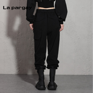 新款 2025春季 女式 黑色个性 子 纳帕佳高腰长裤 百搭裤 束脚针织休闲裤