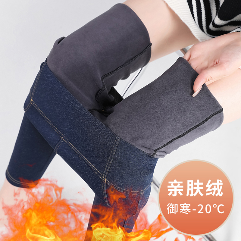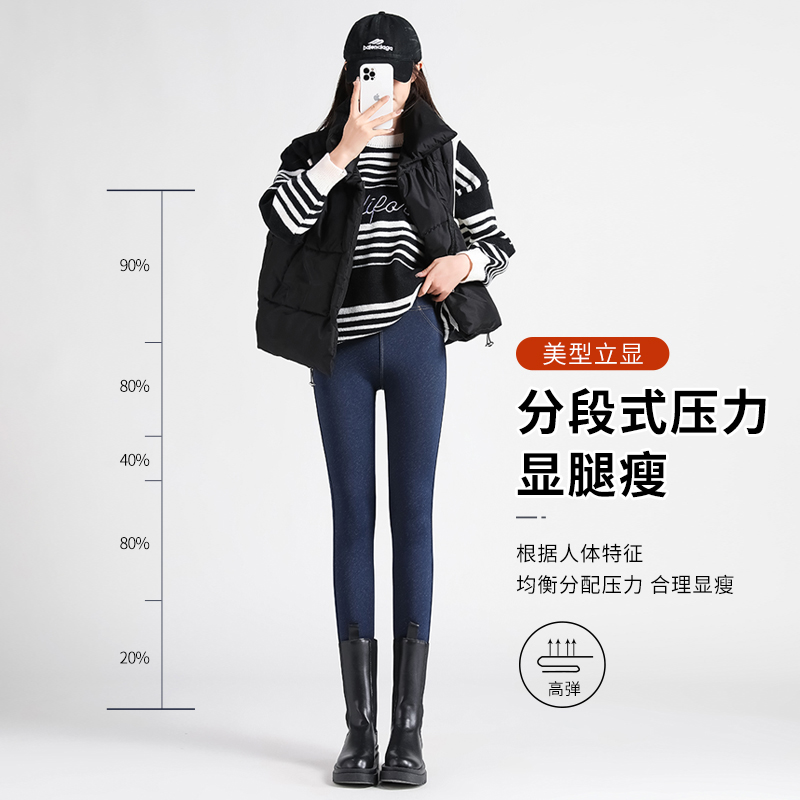 加绒加厚显瘦鲨鱼裤 秋冬高腰收腹提臀打底裤 女外穿新款 牛仔芭比裤