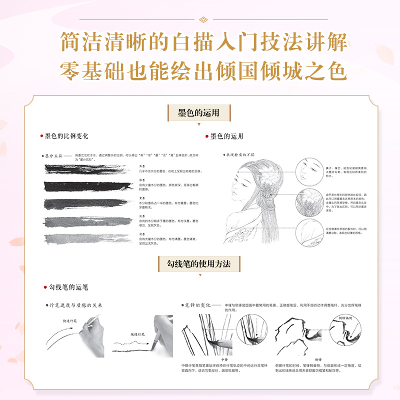 人民邮电出版 古风人物线描技法动漫绘画教程古风美女线稿技法手绘自学铅笔线描素描插画临摹画册 工笔白描百美画谱 国色佳人