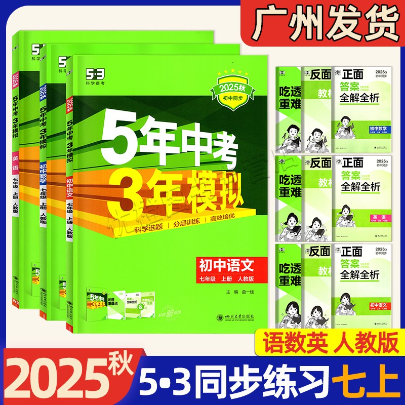 RJ北师版 2025秋新版 语文数学英语生物地理道德与法治历史初一7年级上下同步训练人教版 初中同步七年级上册 BS沪牛 5年中考3年模拟