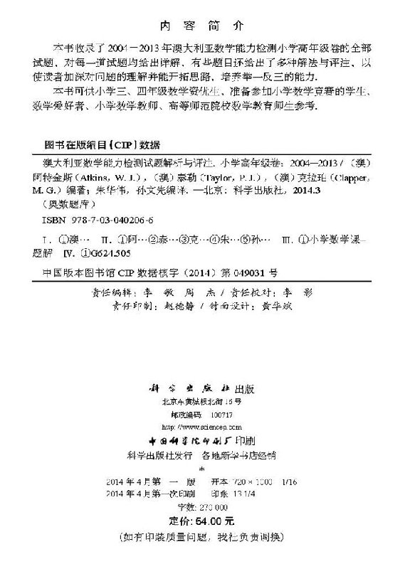 澳大利亚数学能力检测试题解析与评注 2013 小学高级卷2004