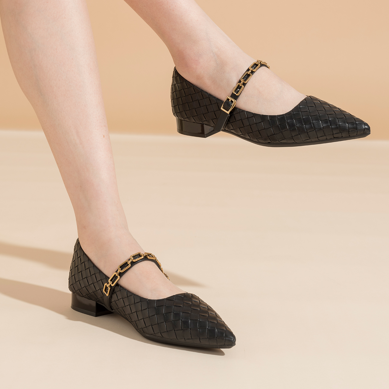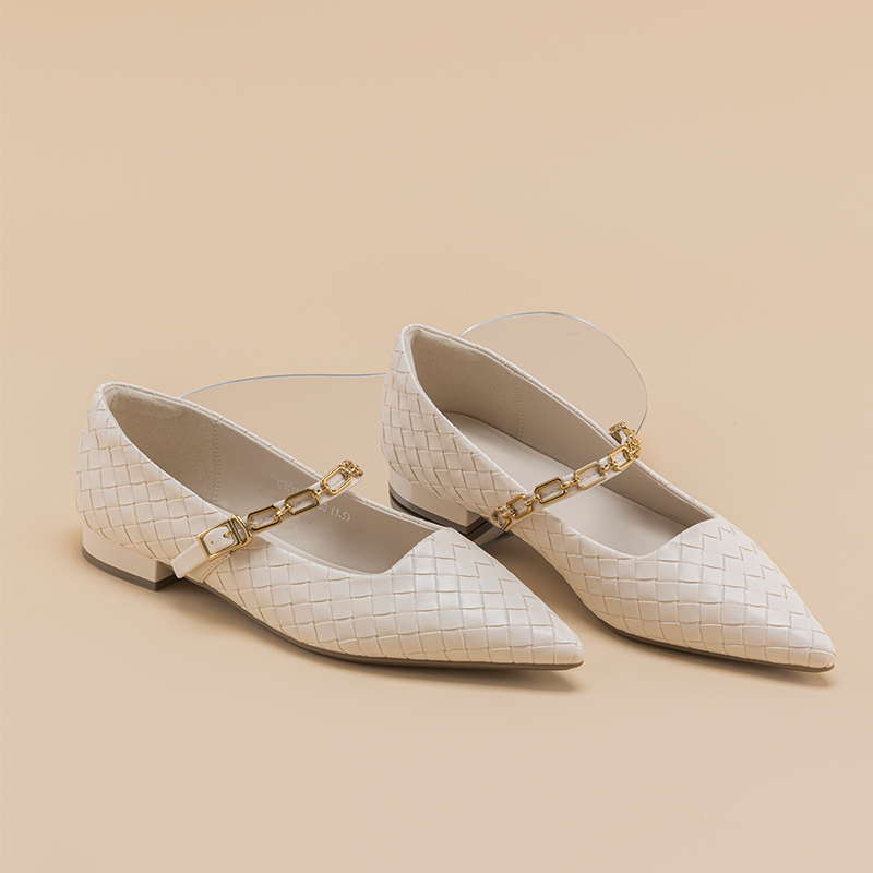 秋季 面玛丽珍百搭小皮鞋 新款 编织鞋 尖头气质浅口单鞋 奥康女鞋