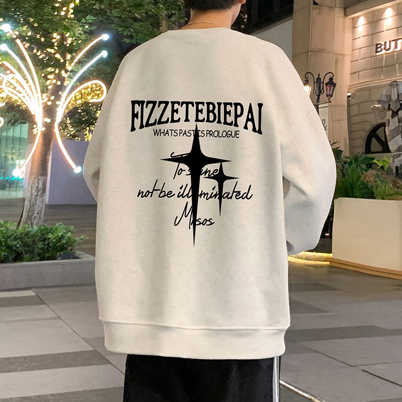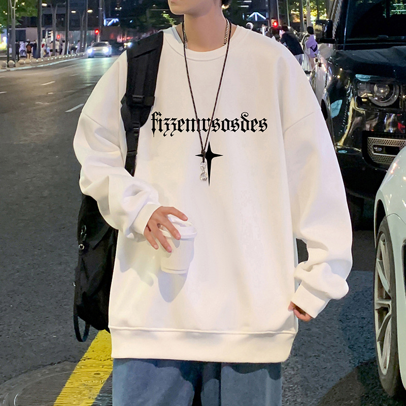 打底衫 美式 衣服圆领长袖 2025新款 套头宽松无帽外套潮 卫衣男春秋季