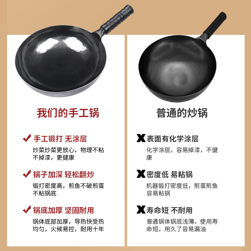 章丘炒菜锅传统铁锅官方旗舰老式 炒锅家用不粘锅无涂层燃气灶适用