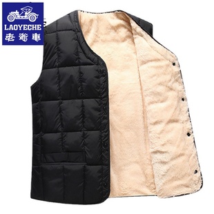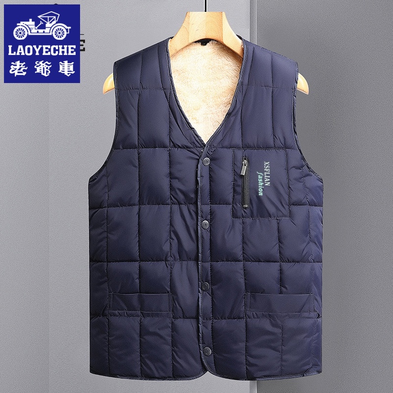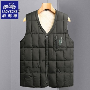 中老年人加绒加厚V领背心外套 2025新款 老爷车中年男士 马甲秋冬季