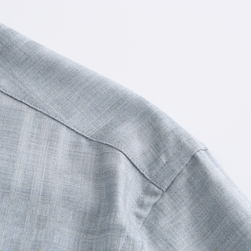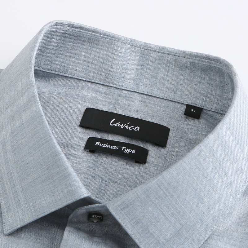 桑蚕丝 衬衫 Lavico 长衬浅灰色格纹商务长袖 男 朗维高男士