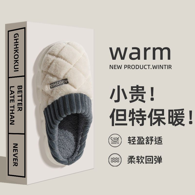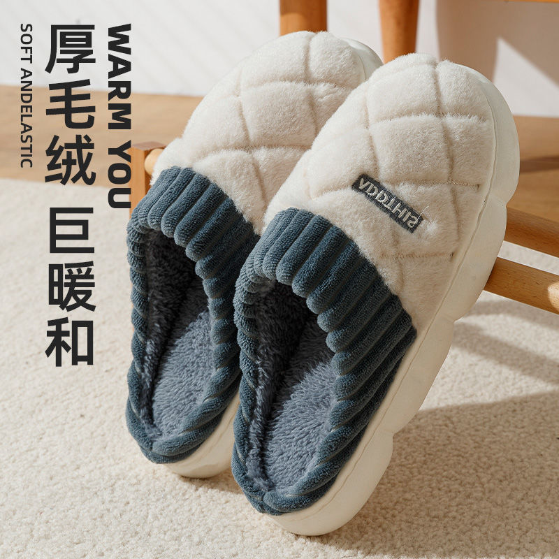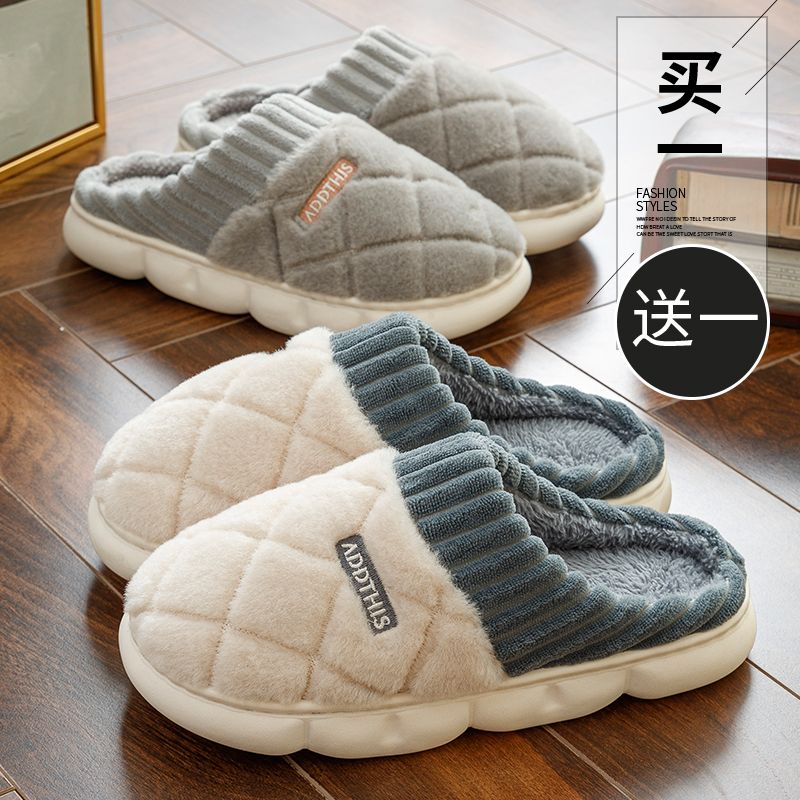 室内防滑保暖情侣家居一对加绒厚底棉拖男士 买一送一棉拖鞋 女冬季