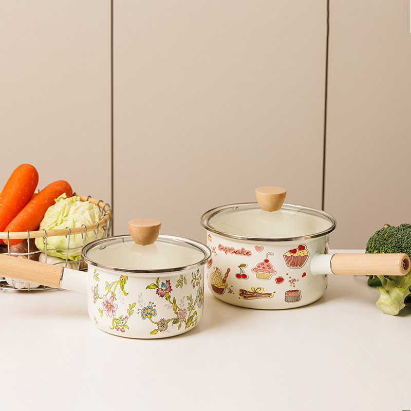 高端搪瓷小奶锅宝宝婴儿辅食泡面热牛奶可爱18CM20珐琅无涂层单柄