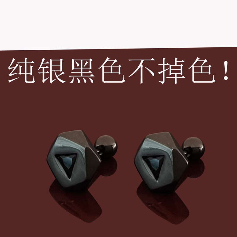 养耳洞黑色耳骨钉女单只耳饰 男士 S925纯银拧螺丝耳钉2025新款 爆款