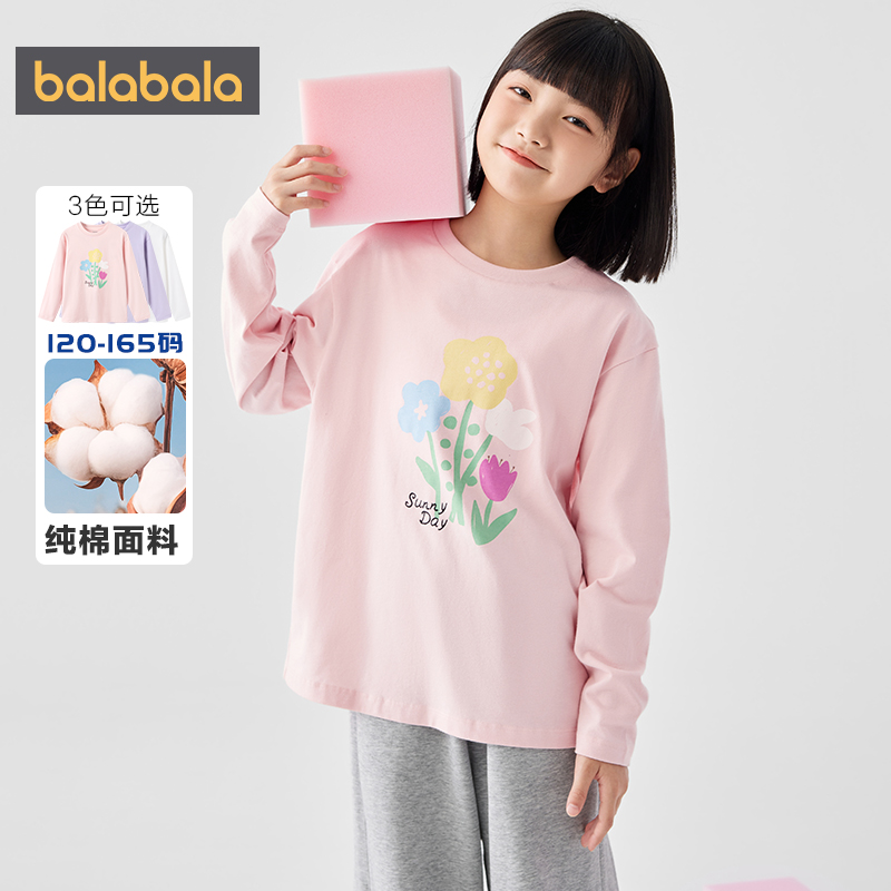 童装 春秋新款 儿童上衣 T恤中大童宝宝白色打底衫 巴拉巴拉女童长袖