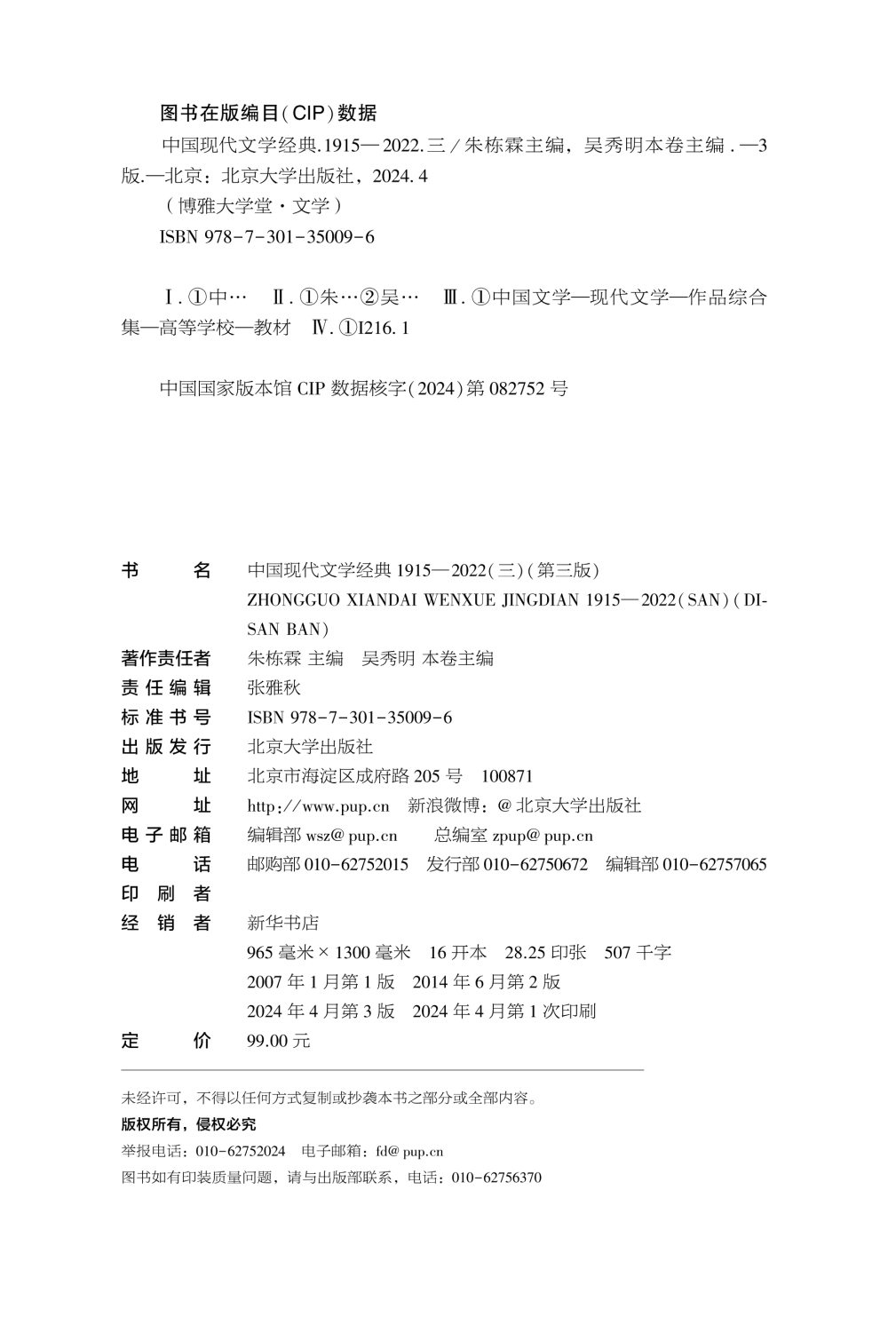 朱栋霖 9787301350096 三 社 北京大学出版 吴秀明 文学 博雅大学堂 第三版 1915—2022 中国现代文学经典