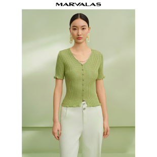 打底衫 莱赛尔纯色木耳边短袖 新款 曼德诗醋酸天丝针织T恤2025夏季