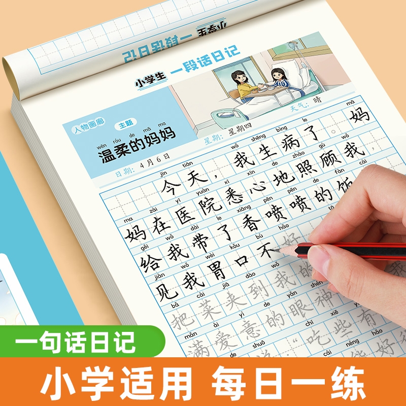 一句话日记练字帖看图写话一年级二年级上下册每日一练语文专项训练儿童练习本作文素材看图说话幼小衔接阅读好词新版 临摹句子楷书