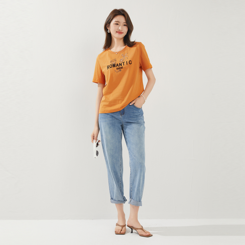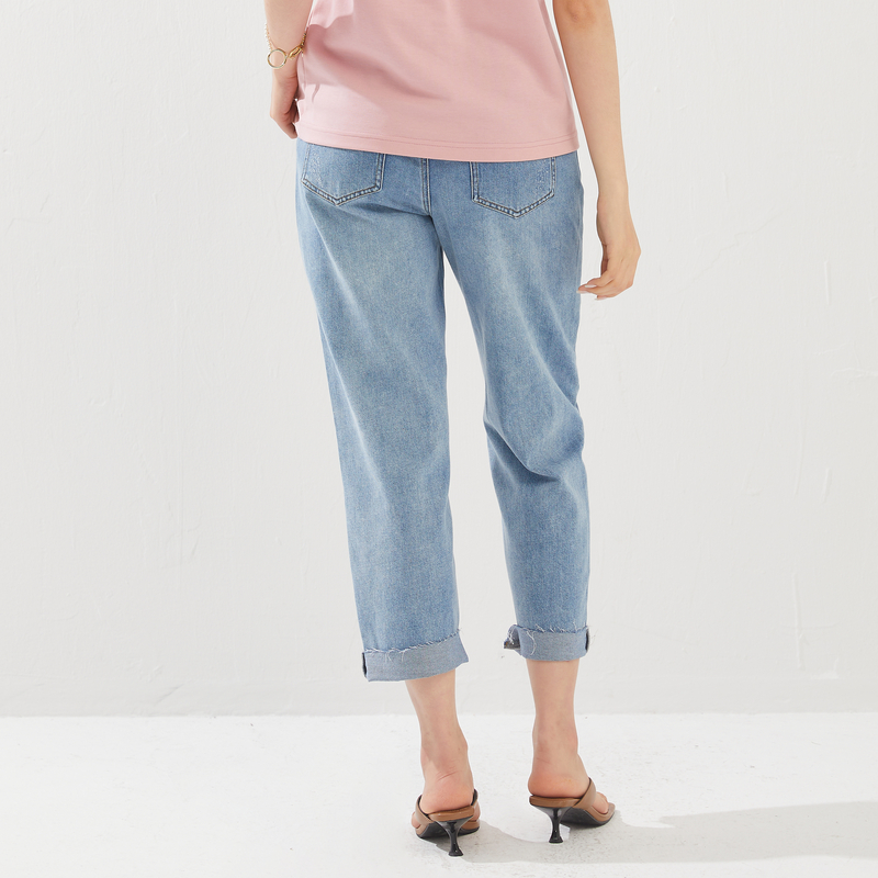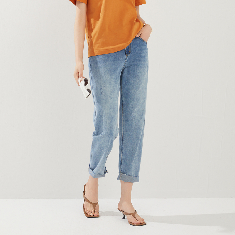 时尚 牛仔裤 夏季 新款 女 XG雪歌蓝色卷边窄版 设计感毛边休闲长裤 修身
