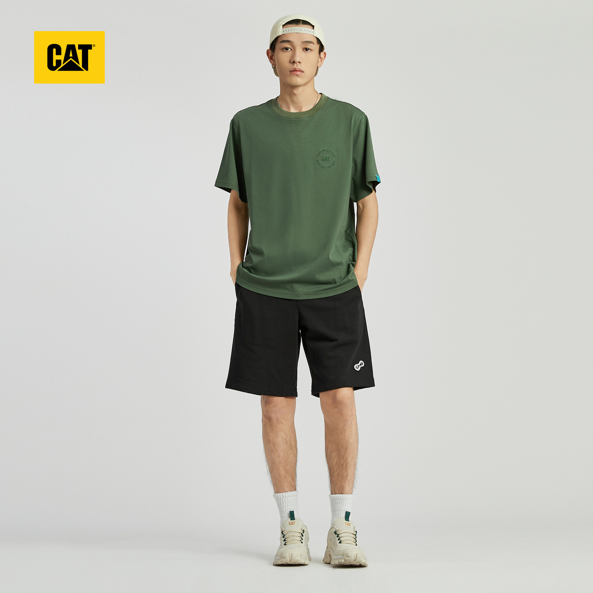 复古宽松短袖 CAT卡特25夏季 绣花logo设计全棉美式 工装 T恤 男士
