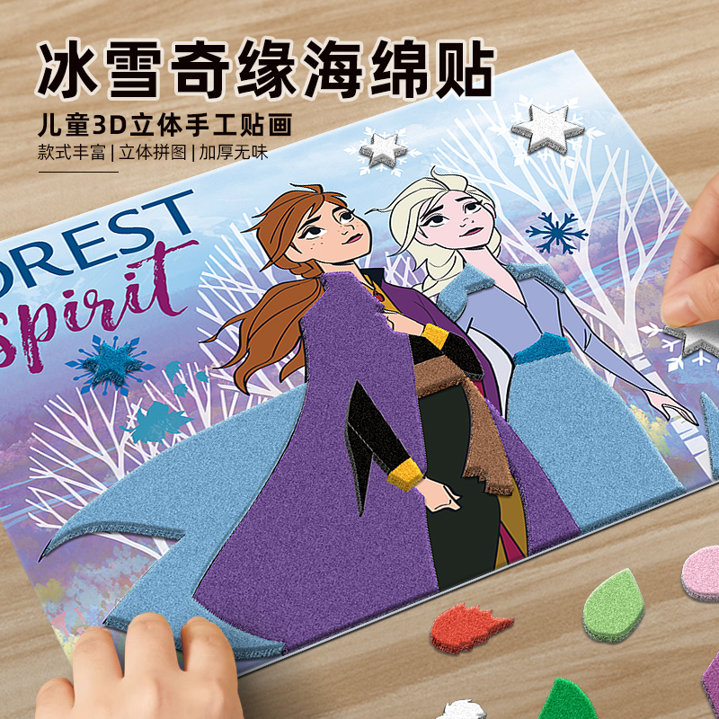 冰雪奇缘3d立体粘贴画儿童手工diy制作材料包益智玩具eva贴纸女孩