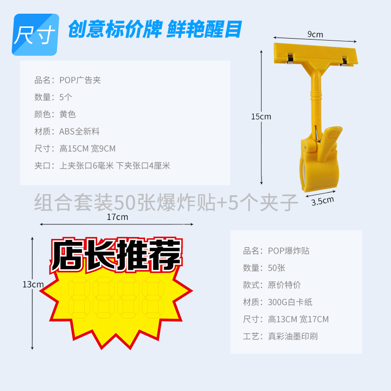 商品价格牌活动促销 价格标签展示牌超市POP广告夹子爆炸贴夹新款 店大码 夹女装 标价牌价目贴纸 创意大号立式