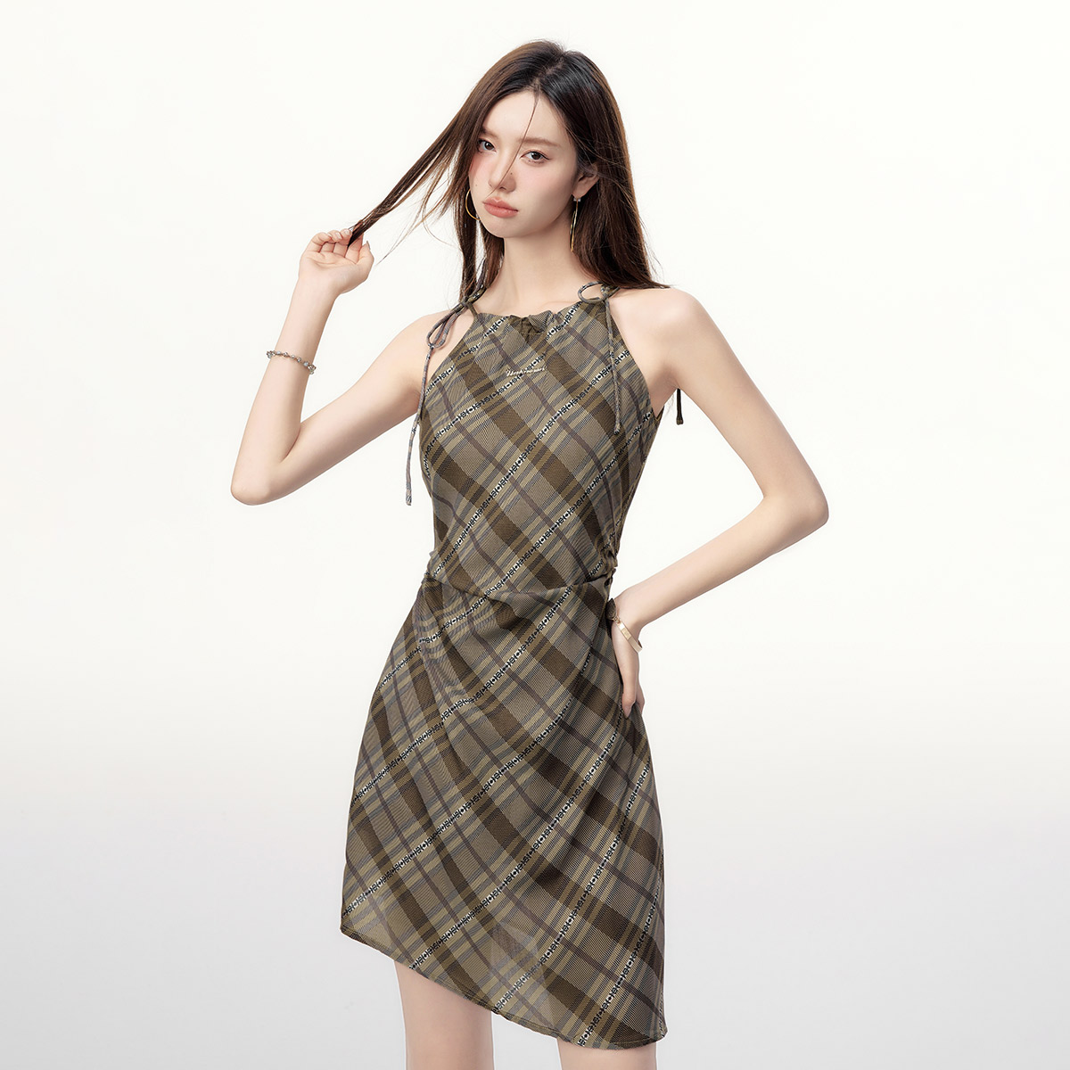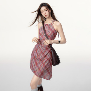 EPTISON挂脖连衣裙2025夏季 复古别致辣妹气质小个子度假裙子 新款