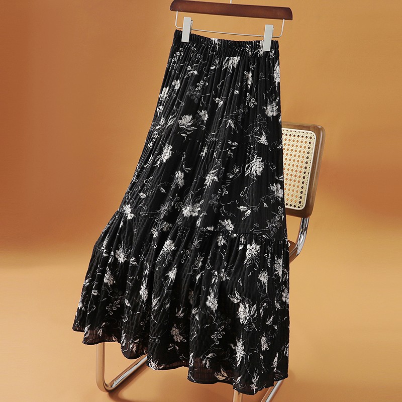 desire松紧腰自然皱感A字半身裙2025秋季 orange 新款 奶酥裙