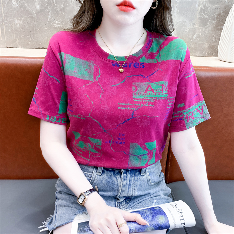 新款 T恤女夏季 宽松休闲显瘦百搭圆领气质上衣 字母印花短袖 时尚