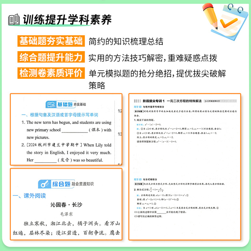 历史地理生物道德与法治人教版 语文英语外研版 教材同步中学教辅资料 初中必刷题七八九年级上册下册数学科学浙教版 浙江专用2026新版