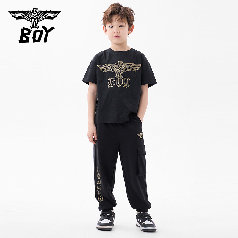 鹰标时尚 BOY童装 经典 儿童潮牌短袖 舒适圆领T恤男童女童 25夏新品