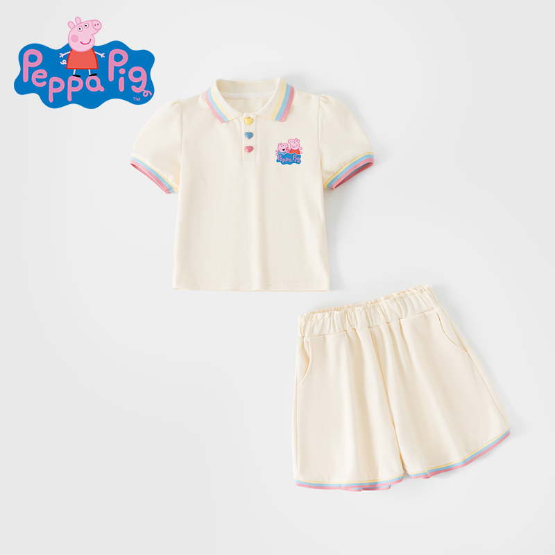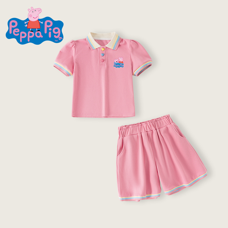 短裤 小猪佩奇女童套装 儿童洋气时髦宝宝POLO衫 2025新款 两件套 夏装