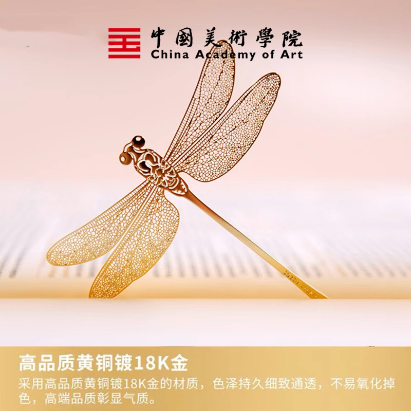 中国美术学院文创蜻蜓金属书签镀18k金高档文创国风定制生日送劳动节礼物送长辈老师教师