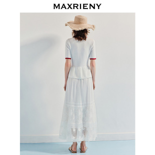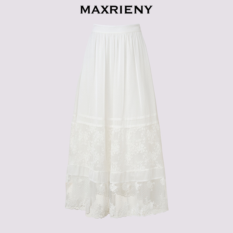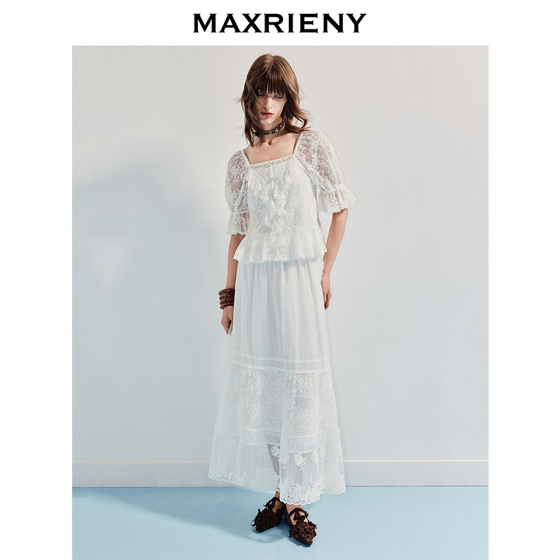 MAXRIENY波嬉风半裙25夏款 西波米亚收腰散摆蕾丝中长裙高级气质感
