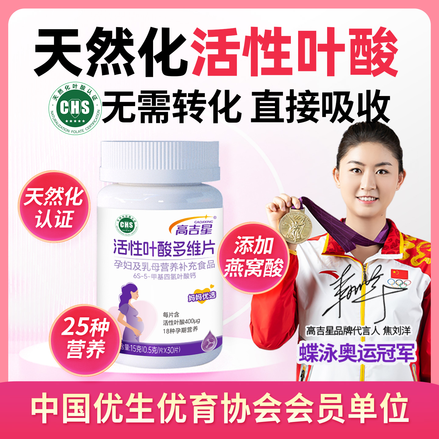 高吉星活性叶酸多维片备孕期孕妇专用孕前早中晚医复合维生素多维
