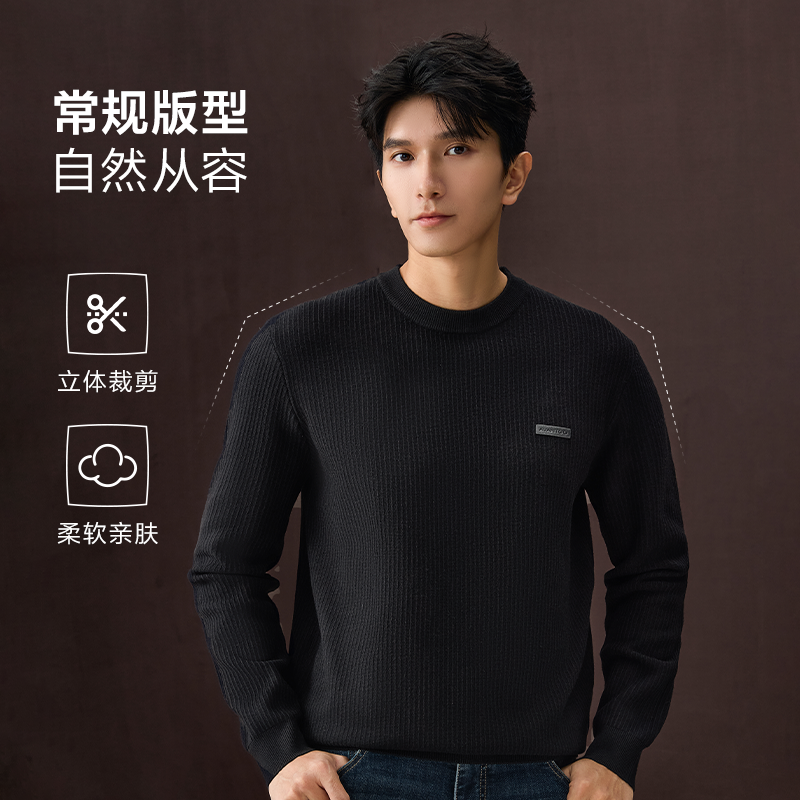 25秋季 双领针织衫 新提花黑色假两件毛衣男 海澜之家轻商务时尚 HLA
