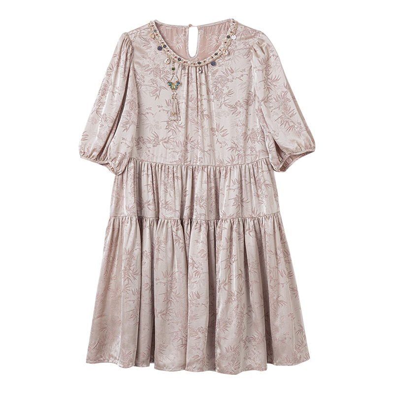 COCOBELLA南法风手工钉珠连衣裙肌理植物印花大摆长裙FR0071