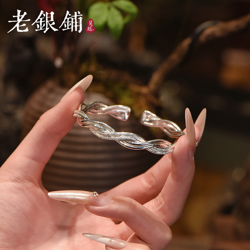泰光银楼足银9999金凤翎心经银手镯子国风珐琅彩送妈妈送女友礼物