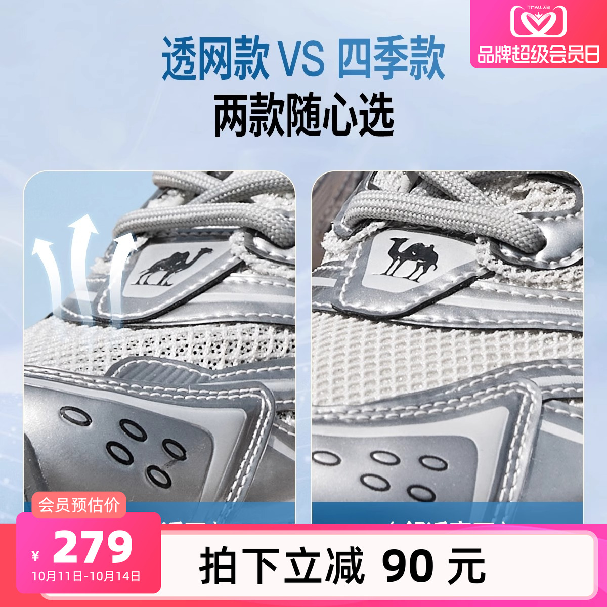 增高厚底运动银色女款 骆驼女鞋 耀月透气休闲新款 2025秋季 老爹鞋