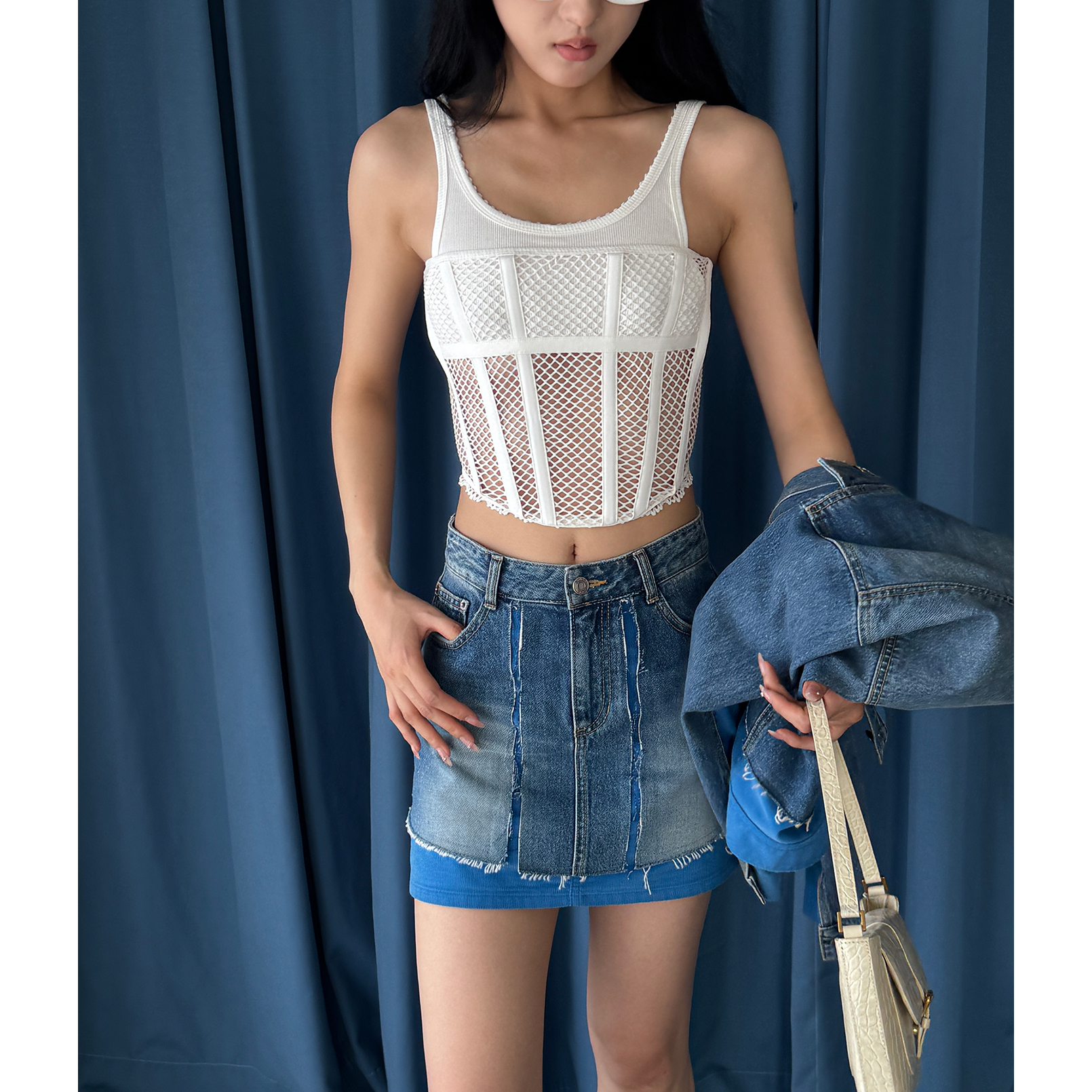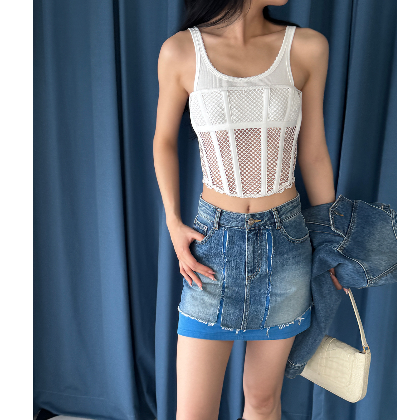SJYP拼接牛仔夹克上衣拼接牛仔半裙休闲百搭复古短外套 清货折